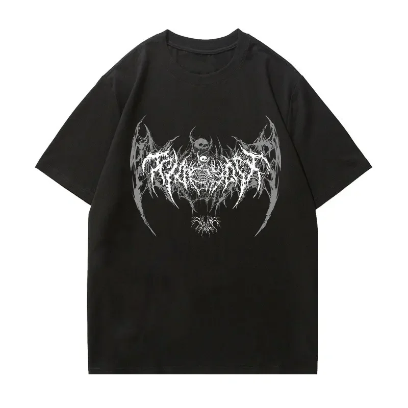 Women's T Shirt Harajuku Y2K Tops Bat Demon Punk Gothic Print T shirt Loose Casual Short Sleeve Oversized T-shirt