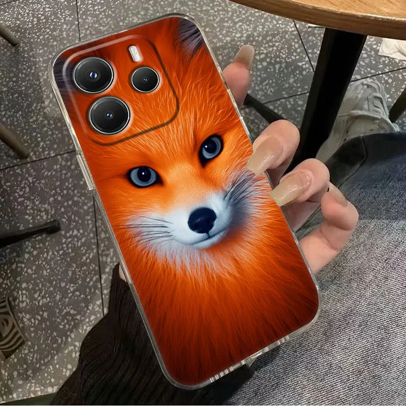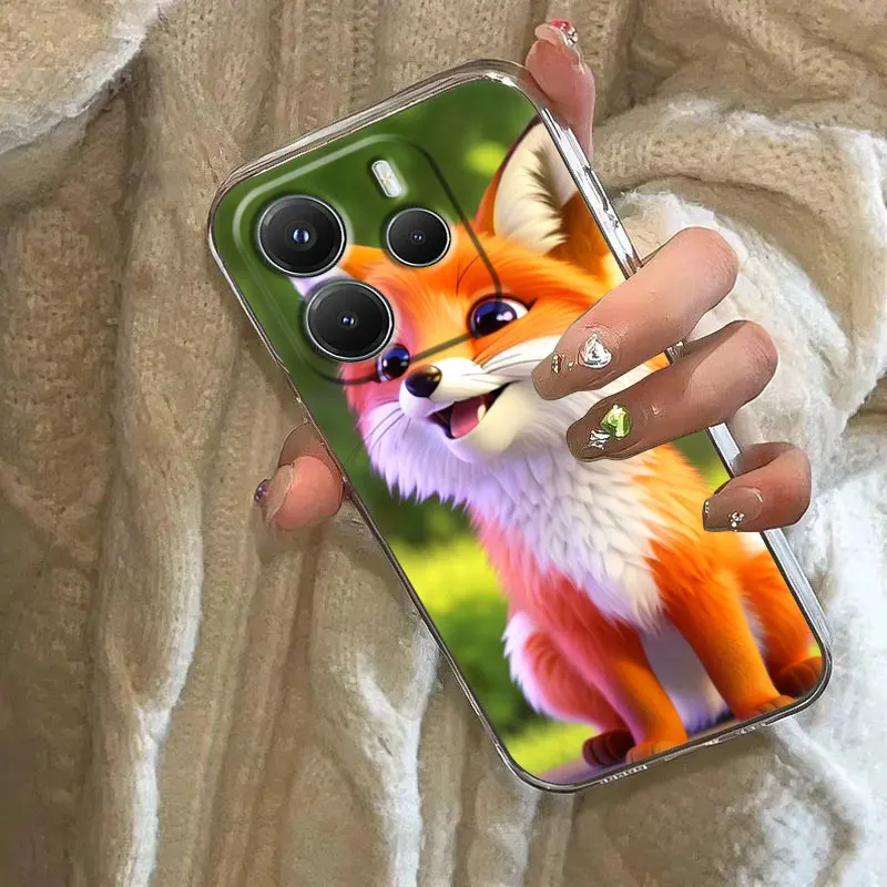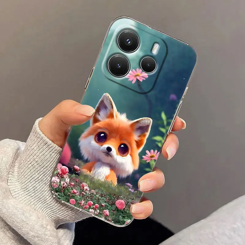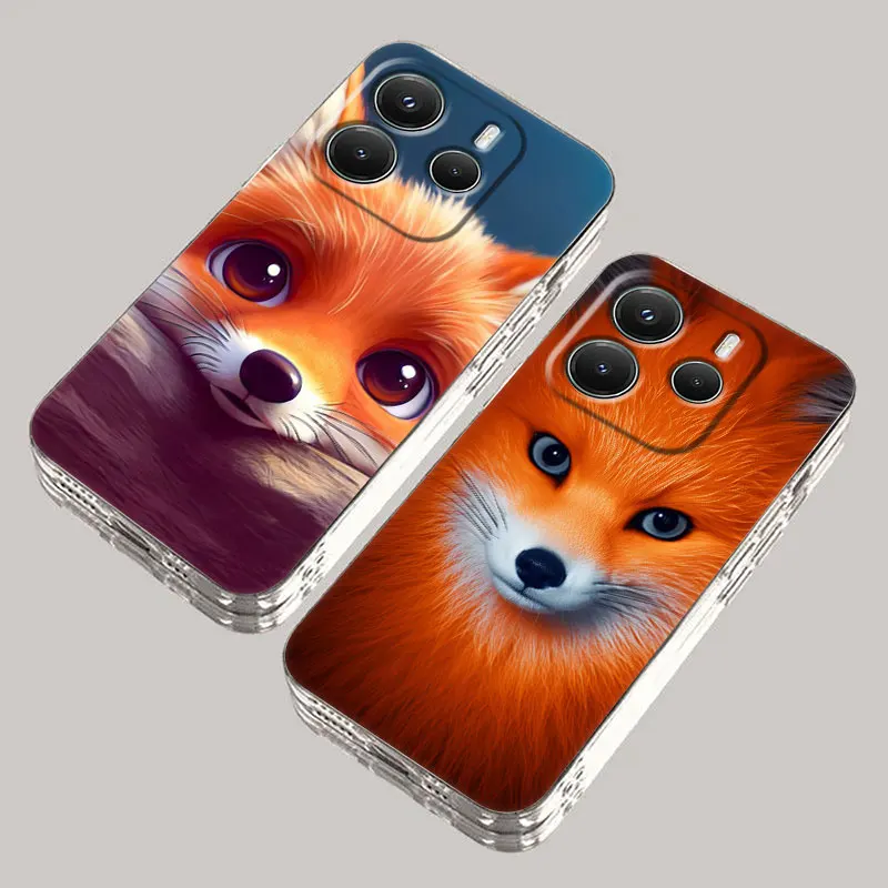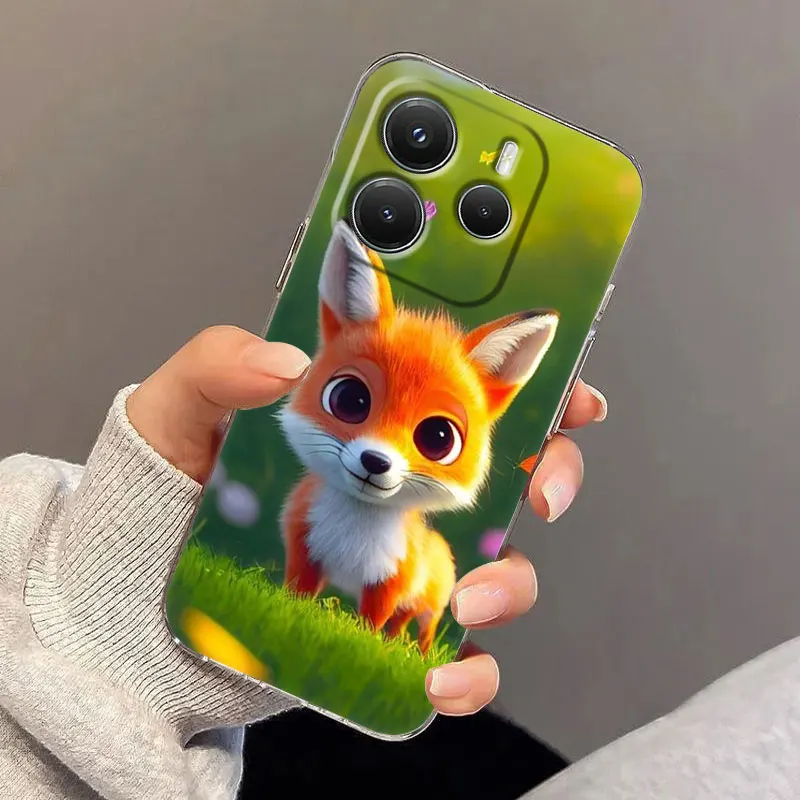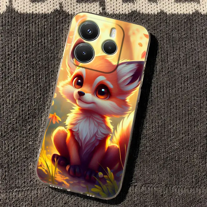 Cute Fox Baby Phone Case For Xiaomi Redmi 14C 13C 12C 10C Back Cover for Redmi Note 14 13 12 11 10 9 8 Pro Plus 4G 5G Clear Case