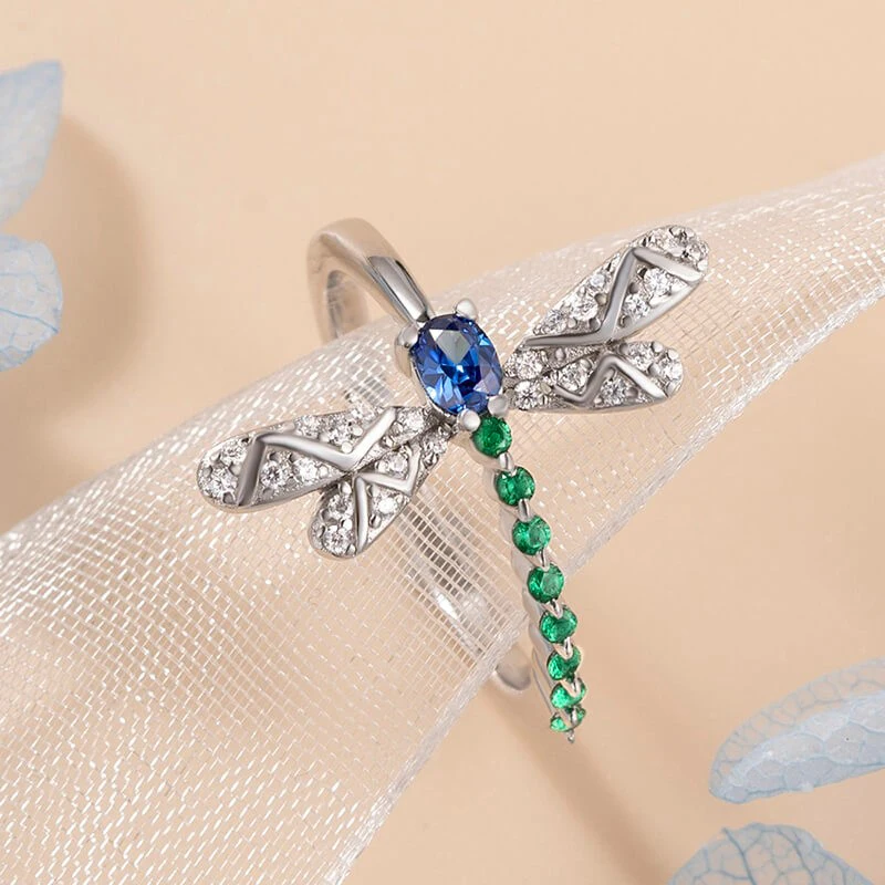 Huitan Chic Dragonfly Rings for Women Blue Green CZ Daily Wear Statement Girls Ring Birthday Gift Dance Party New Trendy Jewelry